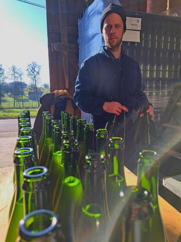 J'ai créé cette petite cidrerie à Reillon en 2020 après plusieurs expériences dans l'ouest de la France. J'ai commencé la production en glanant des pommes non récoltées dans des vergers haute tige et je cultive actuellement environ 5ha avec 3,5ha de jeune plantation. Tous les fruits qui sont pressés sont issues soit de mes vergers en conversion vers l'agriculture biologique soit récoltés sur des arbres de vergers non traités. Je presse tous les fruits dans mon atelier à Reillon, une (petite) partie est destinée au jus de pommes par la pasteurisation et le reste fermente pour la production de différentes cuvées de cidre avec les pommes, poires, coings et autre fruits que je récolte.
